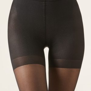 80 denier super opaque tights with lightly graduated compression. The shaping line is designed to sculpt the silhouette. Thanks to the particular characteristics of the material and the construction, the total shaper effect contours the stomach, hips and buttocks. Reinforced top and toes, flat seams, cotton gusset.