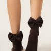 Women’s short socks in soft ribbed cotton combine comfort and style. The leopard print bow appliqué on the back adds a unique and trendy touch.