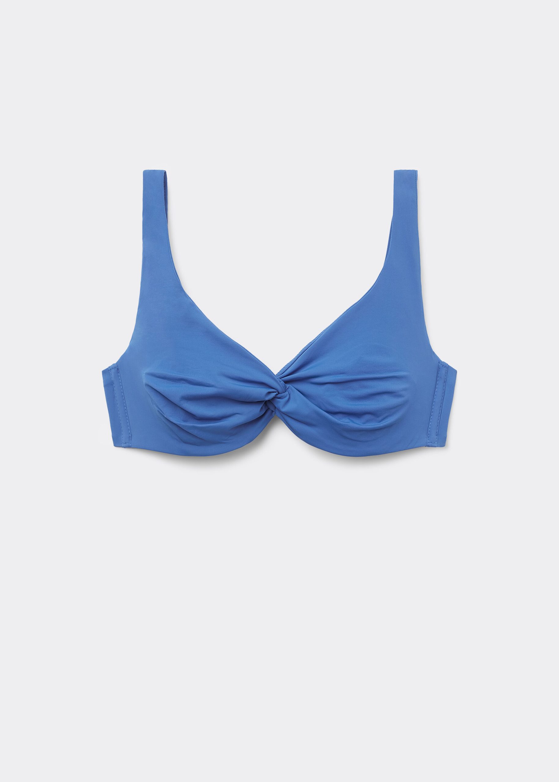 The balconette swimsuit top combines timeless elegance with thoughtful design, making it a standout knot-front bikini. Featuring unpadded cups with underwire and a central knot detail, this top delivers a flattering shape and secure fit for larger busts. The wide, side boning, and tulle-lined cups ensure excellent support while maintaining a smooth silhouette. Crafted from ultra-soft fabric, it feels light and comfortable against the skin, perfect for all-day beach or pool wear. The adjustable and removable straps can be styled multiple ways—crossed at the back, tied behind the neck, or hooked onto the band at different points to suit your physique. A sturdy back closure with two hook-and-eye adjusters guarantees a custom fit and added underband support. Whether you’re lounging or swimming, this knot detail bikini blends sophisticated style with reliable structure, making it a versatile choice for your swimwear collection.