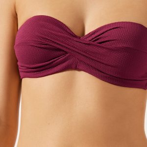 Lightly padded bandeau bikini top with underwire and side boning for excellent support, ideal also for those with larger busts. The removable string tie in the center allows the neckline to be adjusted to get a personalized fit. Made from an elegant piqué fabric, it features adjustable and removable shoulder straps for ultimate comfort and versatility. Back hook closure with two adjusters for a perfect fit.