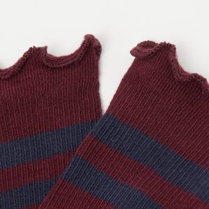 Women’s short socks in soft cotton. The micro-ribbing offers a refined touch and right amount of stretch. The romantic edge and contrasting color bands add a subtle and feminine originality.
