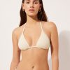 Brazilian bikini bottoms with invisible seams. The slightly rounded waist at the front allows for both a regular and more high-cut fit, depending on one’s physique. Striped patterned fabric in bright colors enhanced with sparkling glitter, creating a dynamic and contemporary effect with its soft texture and vibrant look.