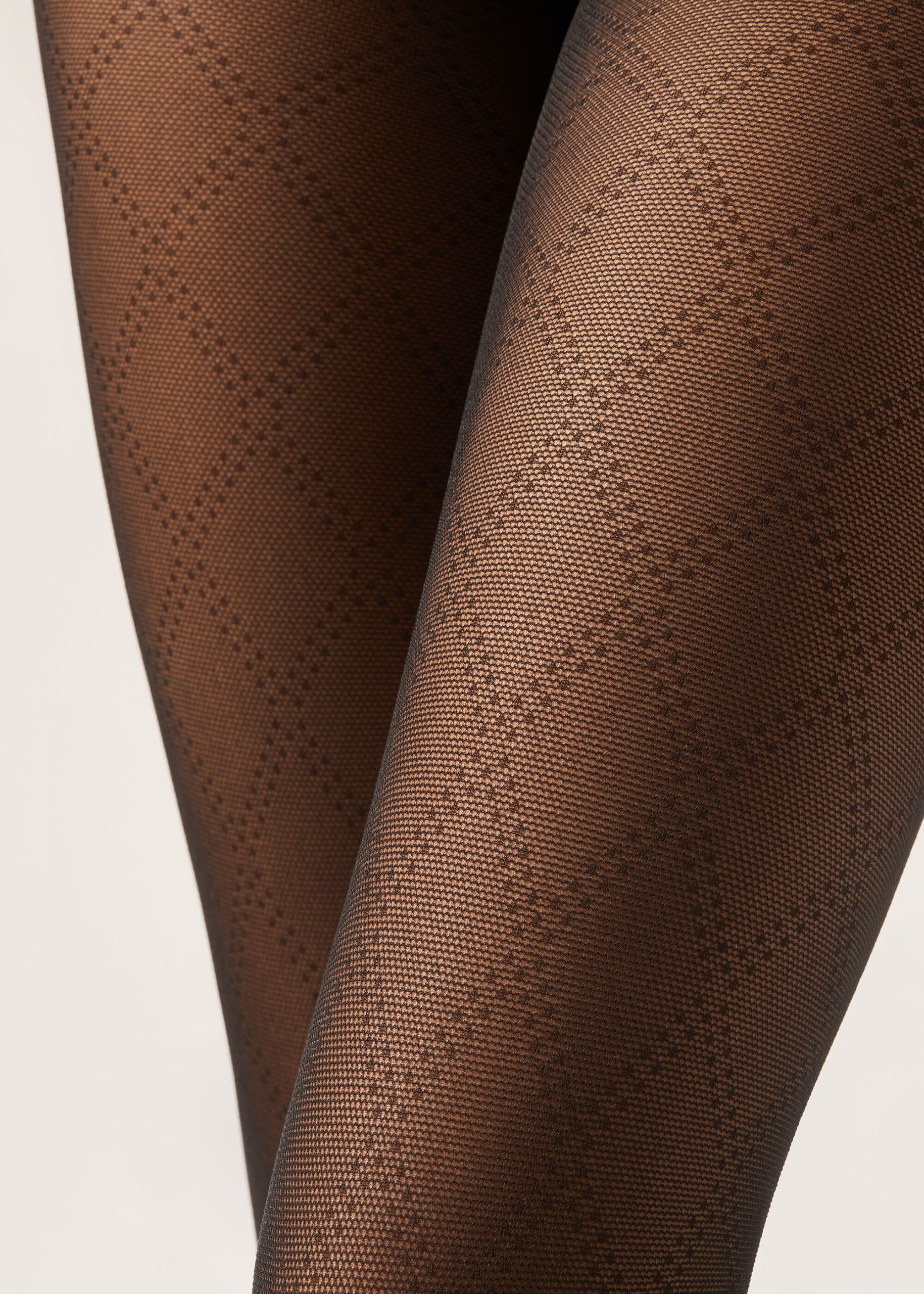 Seventy denier mesh tights with a diamond and dot pattern, featuring a soft waistband for maximum comfort and cotton gusset.