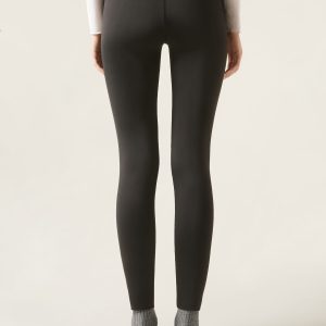 Thermal leggings made in double faced fabric. On one side the texture appears uniform and smooth, on the other it is especially soft and slightly fuzzy: the double faced fabric lets you wear them on either side. Comfortable waistband.