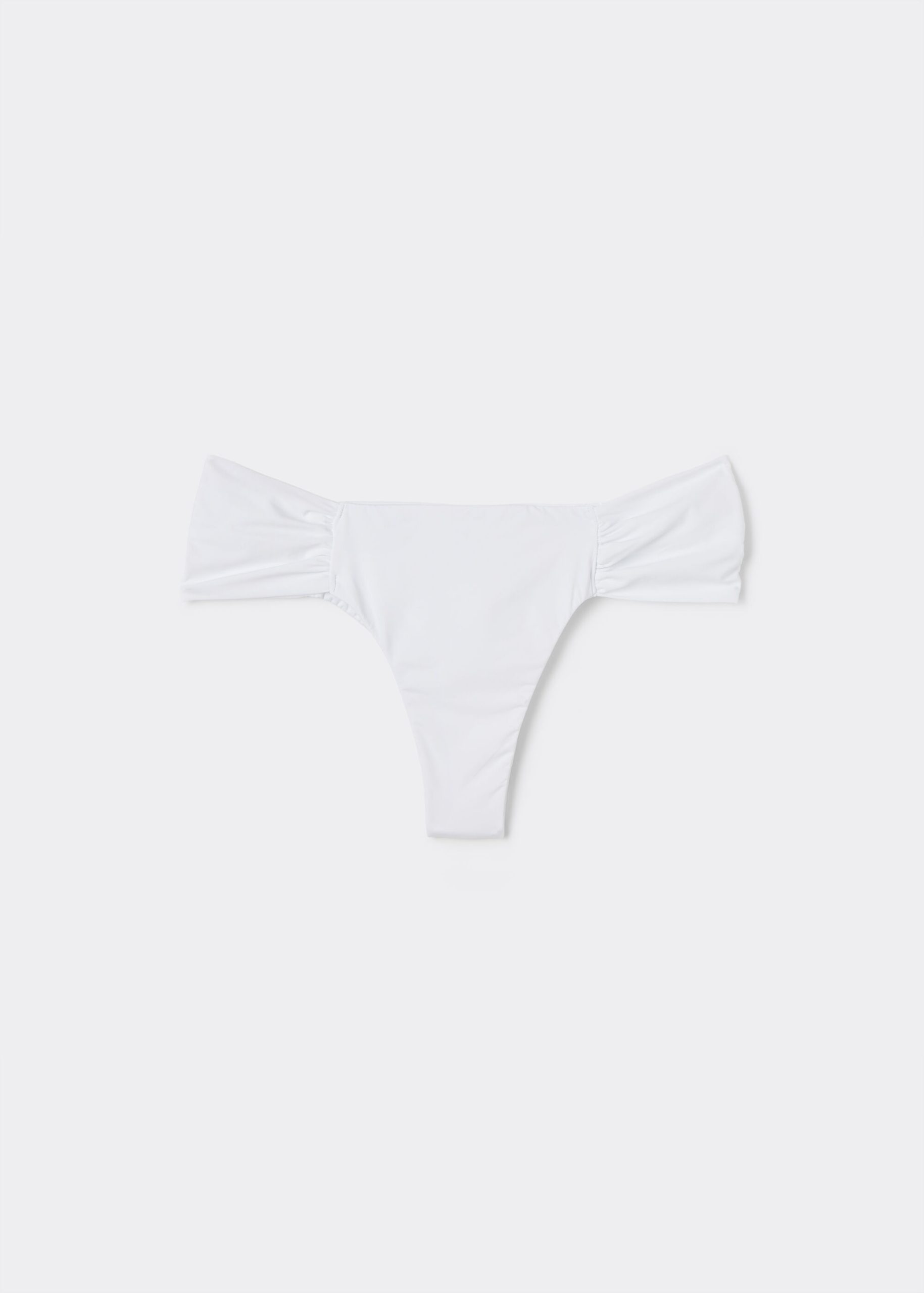 Brazilian bikini bottom with draped fabric at the sides that allow the height to be adjusted. The extremely soft fabric makes it pleasant to wear, offering a light and comfortable feel on the skin. Fully lined and with invisible seams.