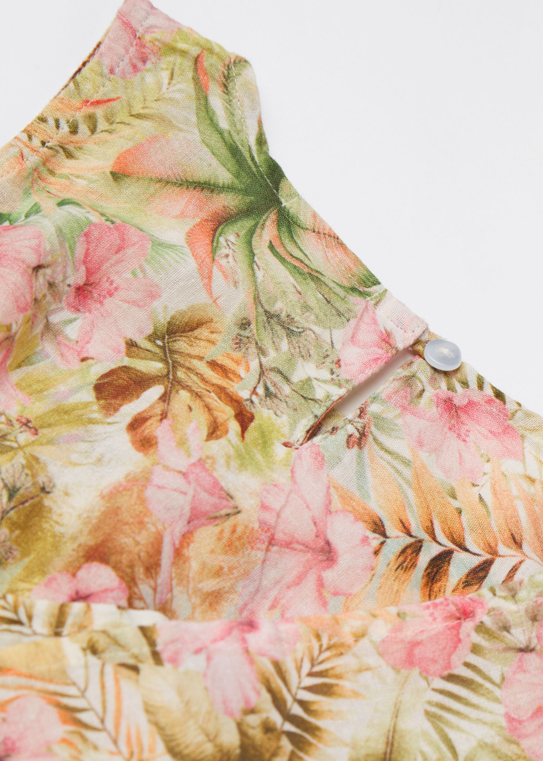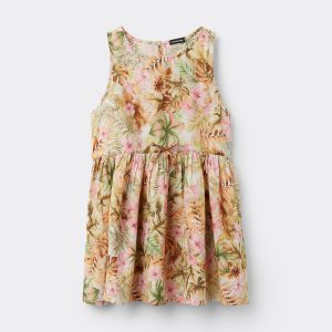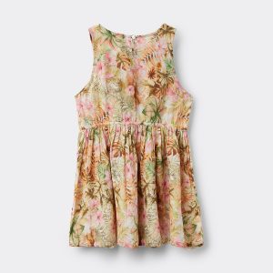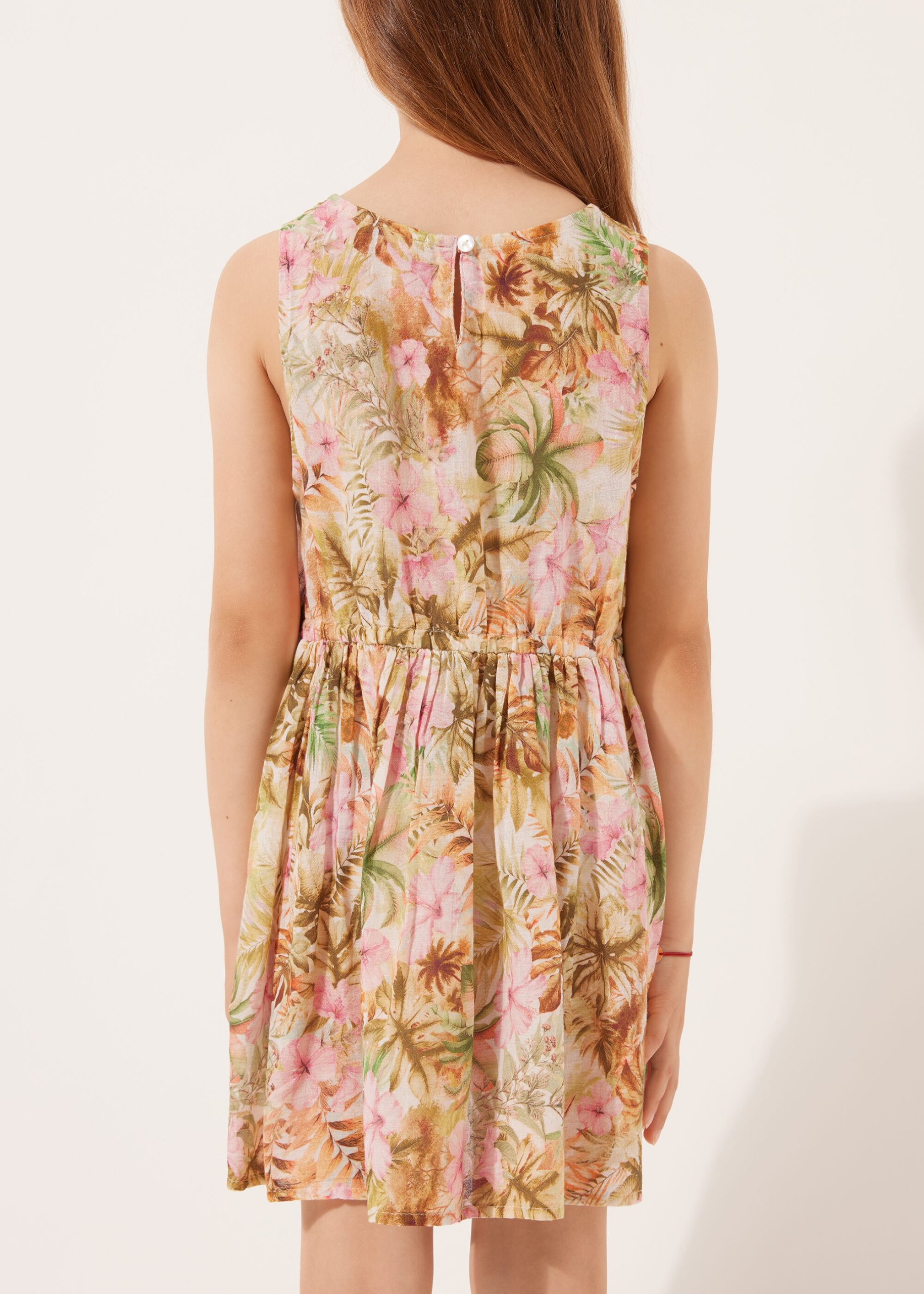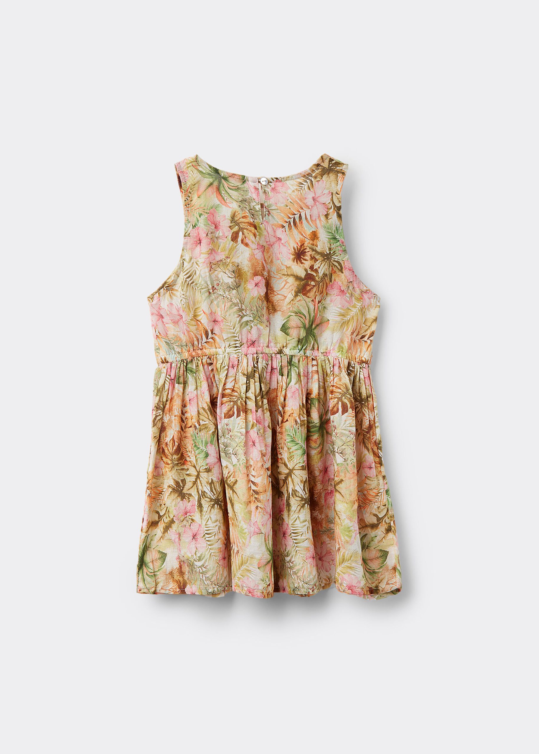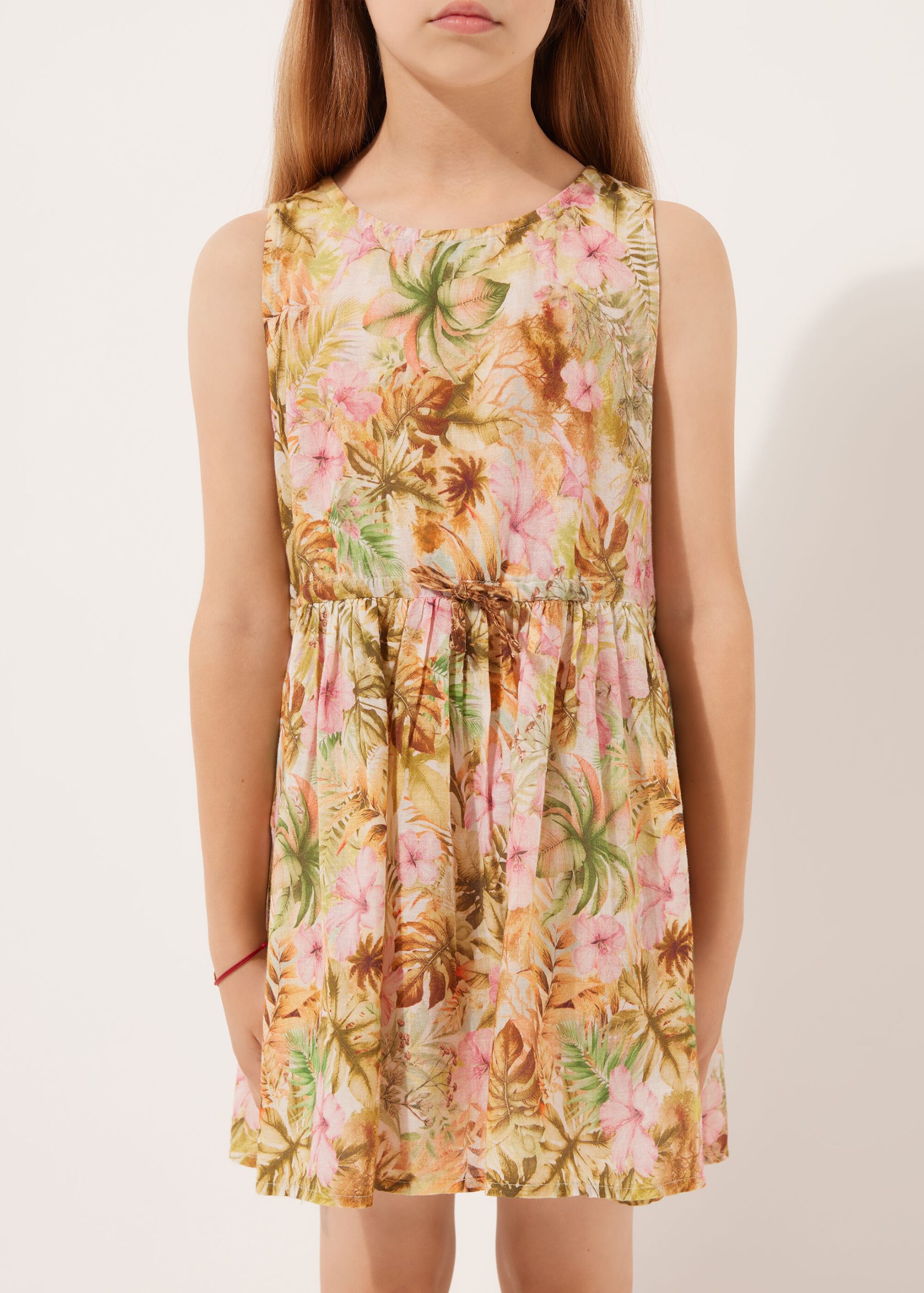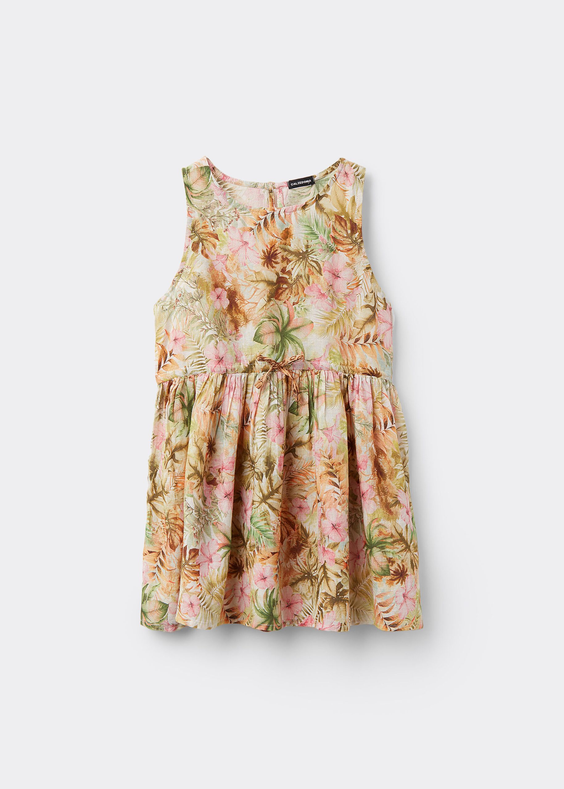 Girls’ dress in soft cotton, perfect as a cover-up. Lightweight and cool, it features a delicate colorful pattern that adds a touch of sweetness. Ideal for days at the beach or in the pool, it offers comfort and freedom of movement.
