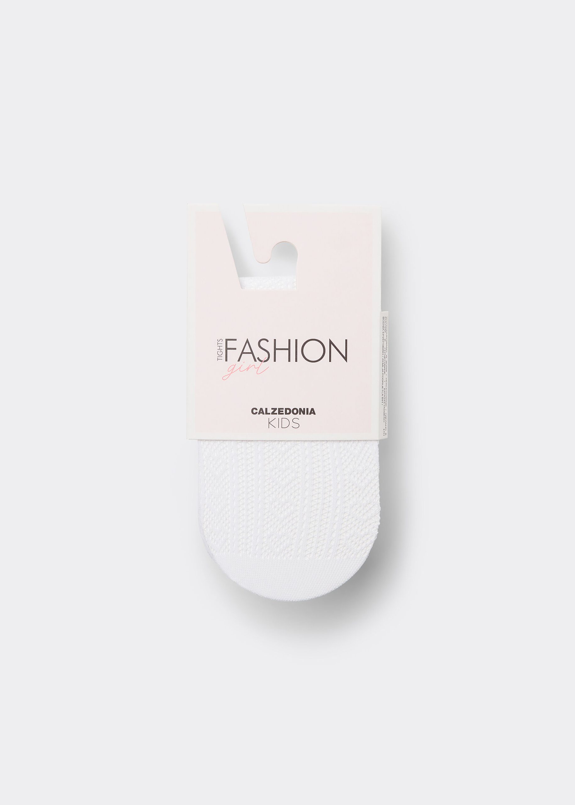 Girls’ fishnet tights featuring a geometric motif with hearts.