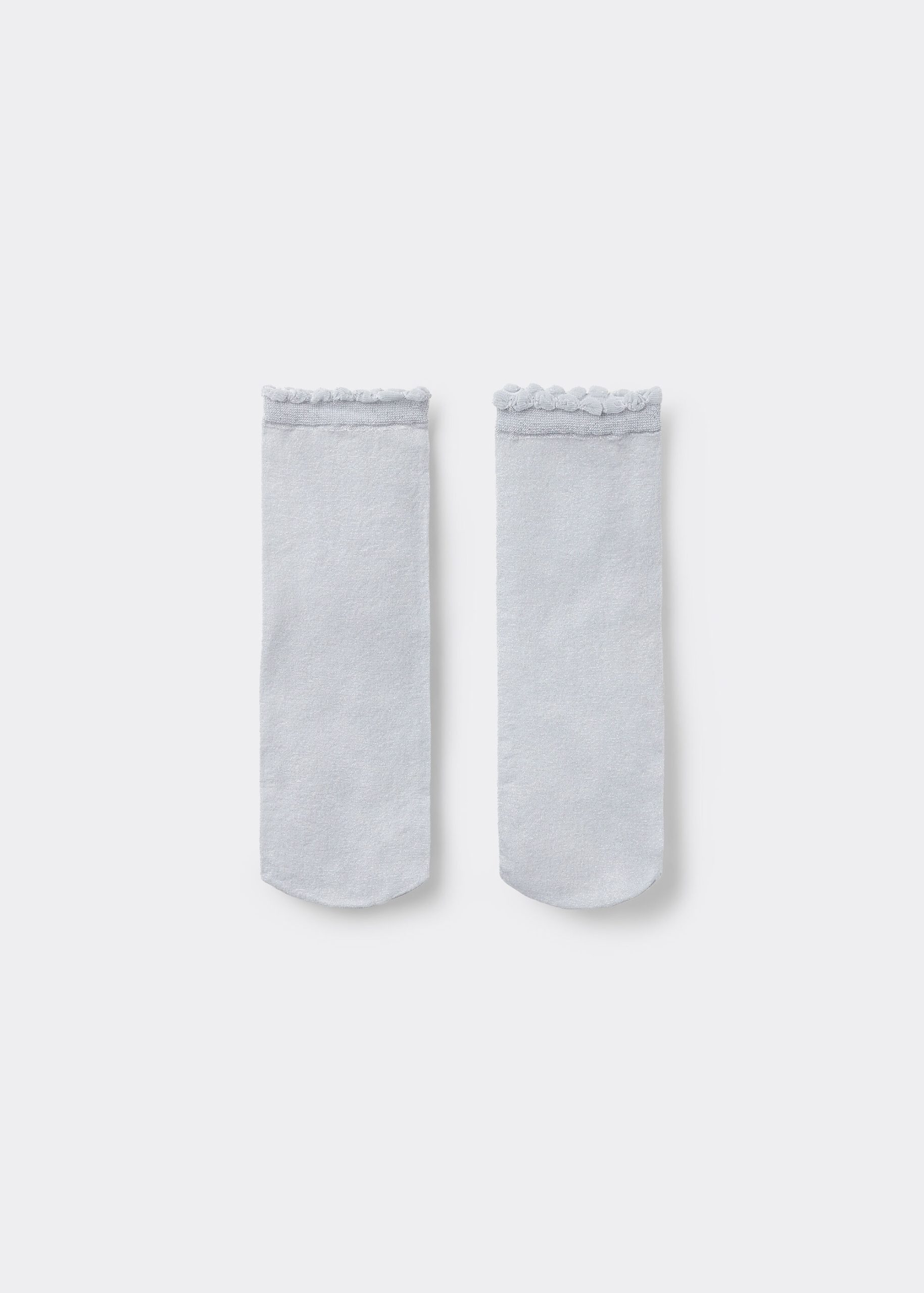 Girls’ 60 denier opaque short socks with glitter trim and scalloped edge.