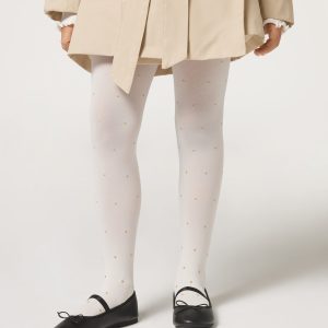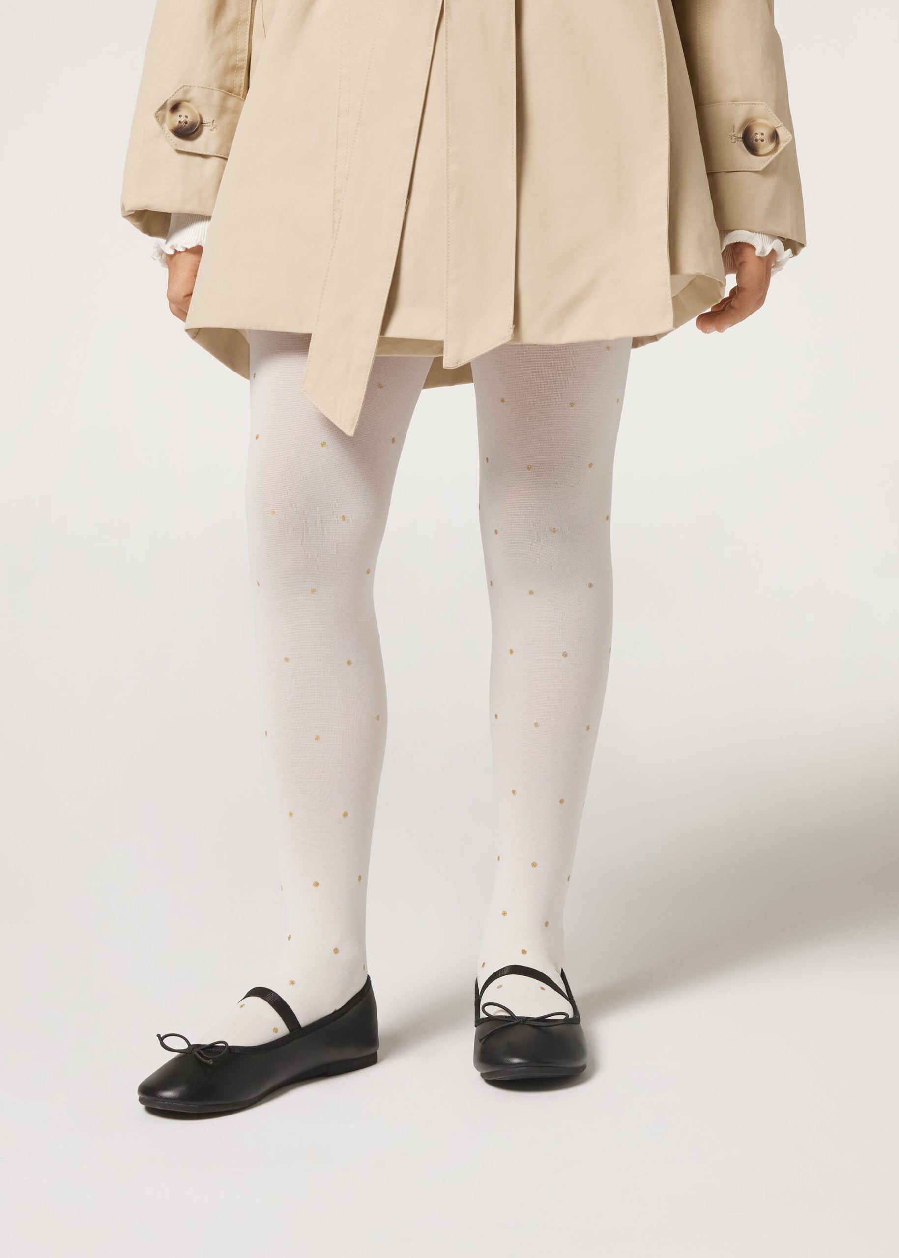 Girls 60 denier microfiber tights featuring an all over glitter motif.