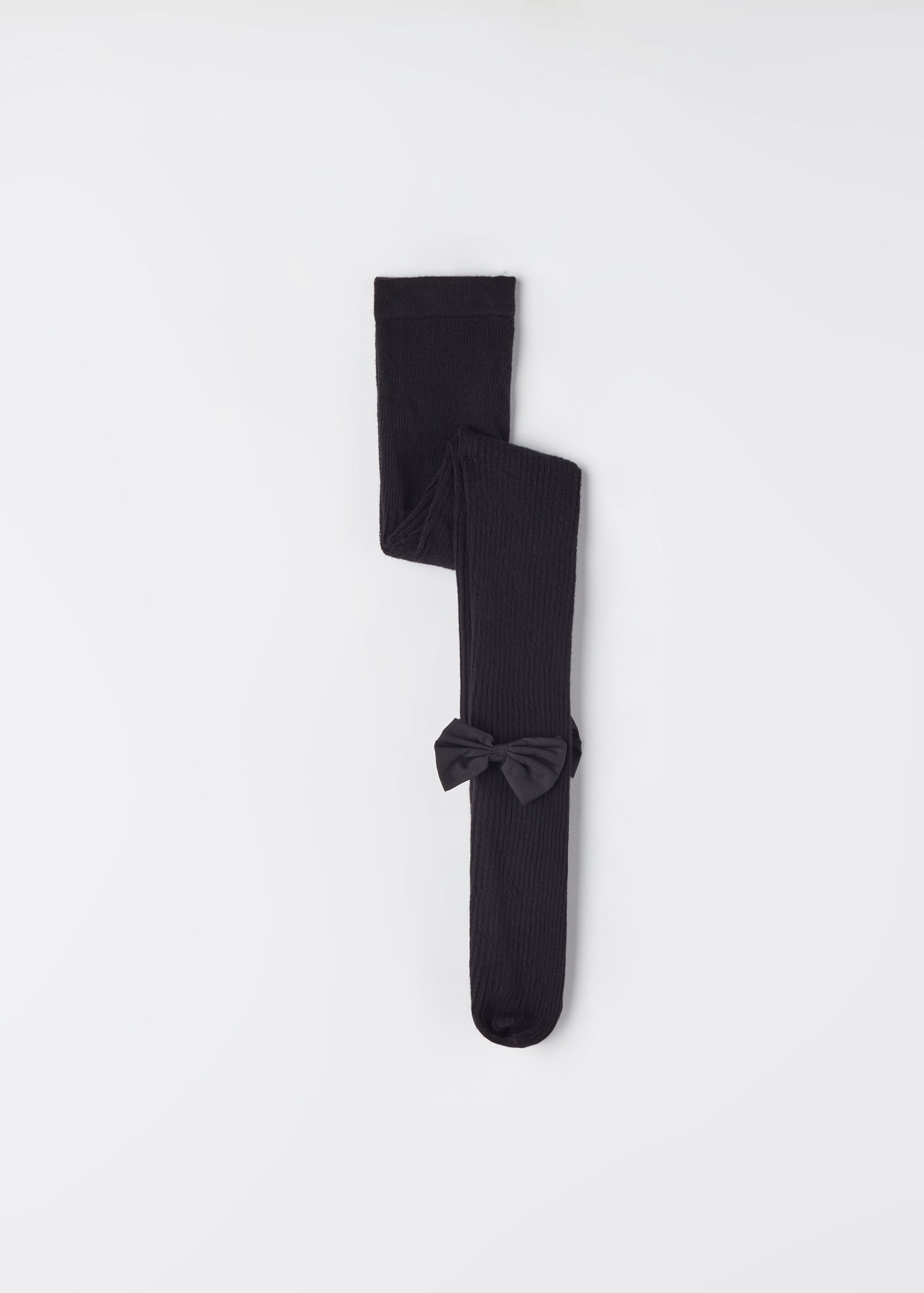 Girls’ soft cotton tights featuring a ribbed construction and embellished with an elegant tone on tone bow.
