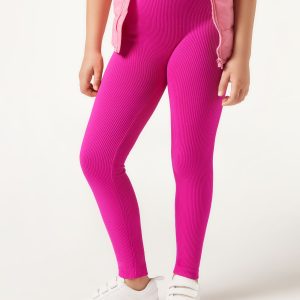 Girls’ fine ribbed seamless leggings in opaque fabric that is especially soft and comfortable thanks to it being elasticized. Comfortable waistband. Leggings suited for sports activities.