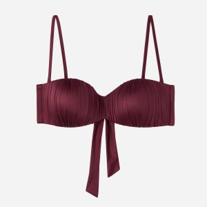 Graduated Padded Bandeau Swimsuit Top Shiny Satin