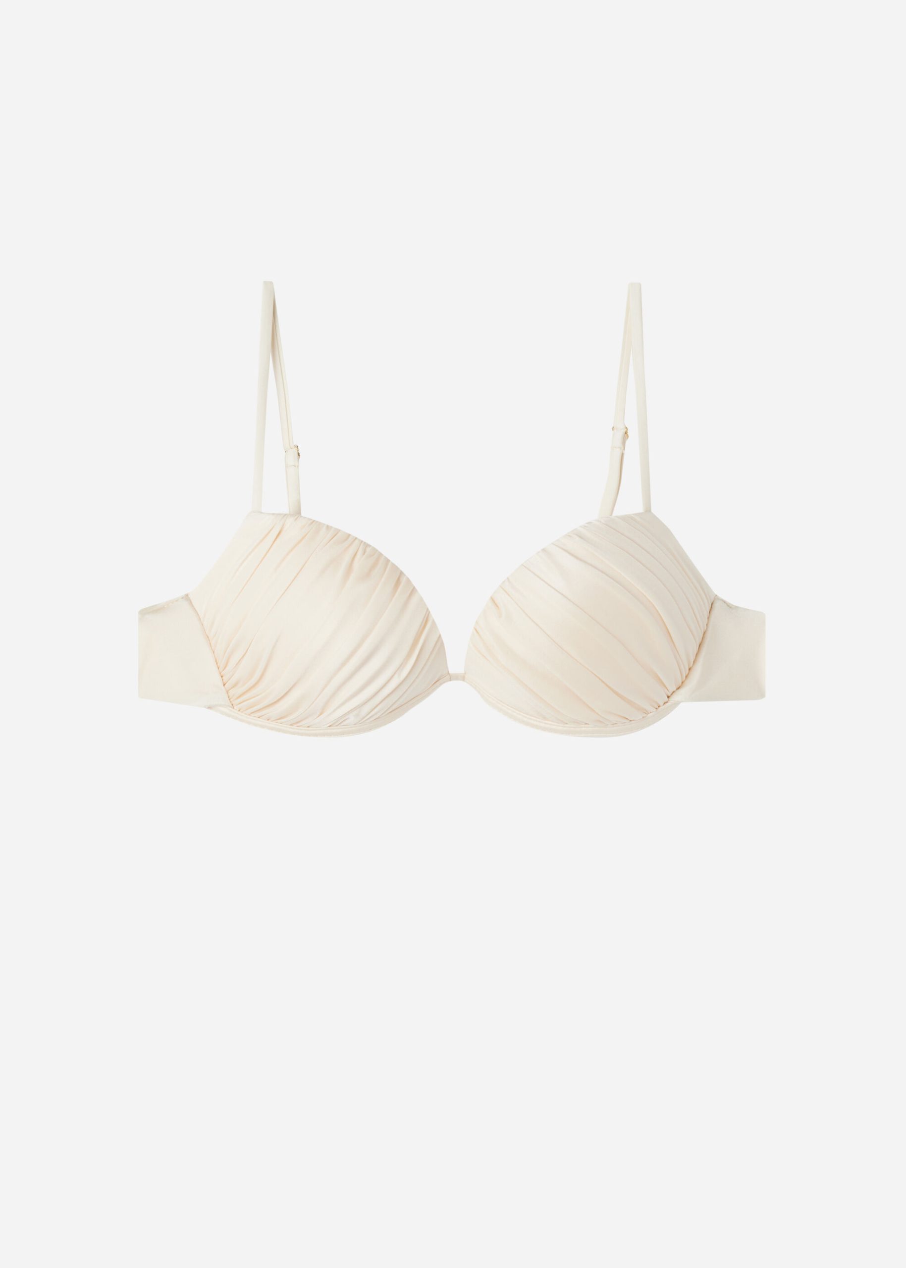 Graduated Padded Push Up Swimsuit Top Shiny Satin