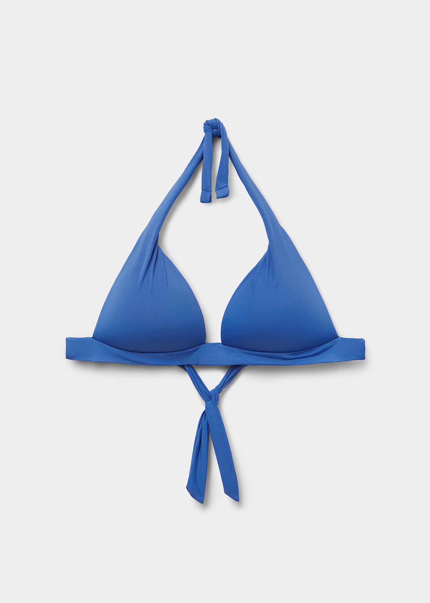 Our Indonesia halter neck triangle bikini top offers the perfect combination of style and comfort. Designed with graduated padded cups, this top adds natural-looking volume to enhance and shape the bust for a flattering silhouette. Made from exceptionally soft fabric, the tie-back bikini top feels light and breathable on the skin, making it ideal for long days by the pool or at the beach. Graduated padding creates a push-up effect, enhancing and lifting the bust for a flattering, sculpted silhouette. The adjustable shoulder straps feature eyelets at the ends, allowing for versatile styling; hook them onto the back band for a classic look or tie them behind the neck for a chic halter effect. With a tie back bikini top closure, this design ensures a secure and adjustable fit, adapting to your shape effortlessly. Thoughtfully crafted for both sun lounging and active swimming, this bikini top combines premium materials with a stylish and versatile design, making it a standout addition to your swimwear collection.