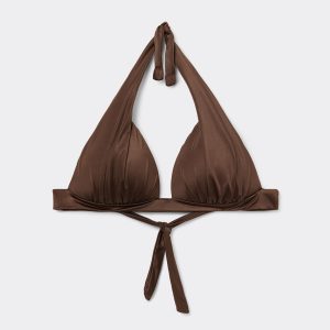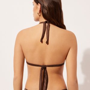 Graduated Padding Triangle Swimsuit Top Shiny Satin
