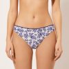 Wireless fixed triangle bikini top with graduated padded cups that add volume to enhance the décolleté. The style features a bright fabric with a silky effect, embellished by ruffles. The shoulder straps have eyelets on the ends so they can be hooked onto the back band or tied behind the neck. Back tie closure.