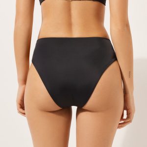High waist bikini bottom with side drawstrings to adjust the fit of the leg openings, with squared aglets. The extremely soft fabric makes it pleasant to wear, offering a light and comfortable feel on the skin. Fully lined and with invisible seams.