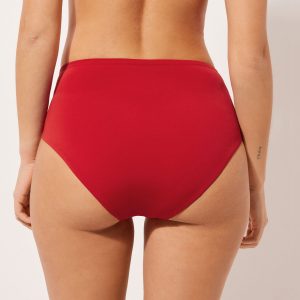 High waist bikini bottom with side drawstrings to adjust the fit of the leg openings, with squared aglets. The extremely soft fabric makes it pleasant to wear, offering a light and comfortable feel on the skin. Fully lined and with invisible seams.