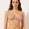 Push-up bikini top with lightly padded cups and underwire to highlight the décolleté. The special bow detail at the décolleté helps to adjust the push-up effect. The extremely soft fabric makes it pleasant to wear, offering a light and comfortable feel on the skin. Adjustable straps. Back closure with two hook-and-eye closures to improve the fit of the underband.