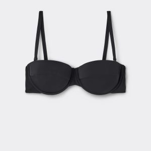 The lightly padded strapless bikini top blends elegance with functionality, making it a must-have balconette bikini. Designed with lightly padded cups and underwire, it provides gentle lift and shaping, offering support and a defined silhouette. The structured balconette style is perfect for sunbathing, ensuring no tan lines while delivering a secure and flattering fit. A unique cut-out detail on the cups adds a modern touch, elevating the design. Crafted from ultra-soft fabric, it feels breathable and light on the skin, even during long beach days. The versatile design features removable straps for added styling options—wear them for extra support or go strapless for a sleek, streamlined look. A two-hook-and-eye back closure ensures the underband stays comfortably in place while allowing for adjustability. This strapless balconette bikini is ideal for anyone seeking chic swimwear that offers both style and support for any summer adventure.