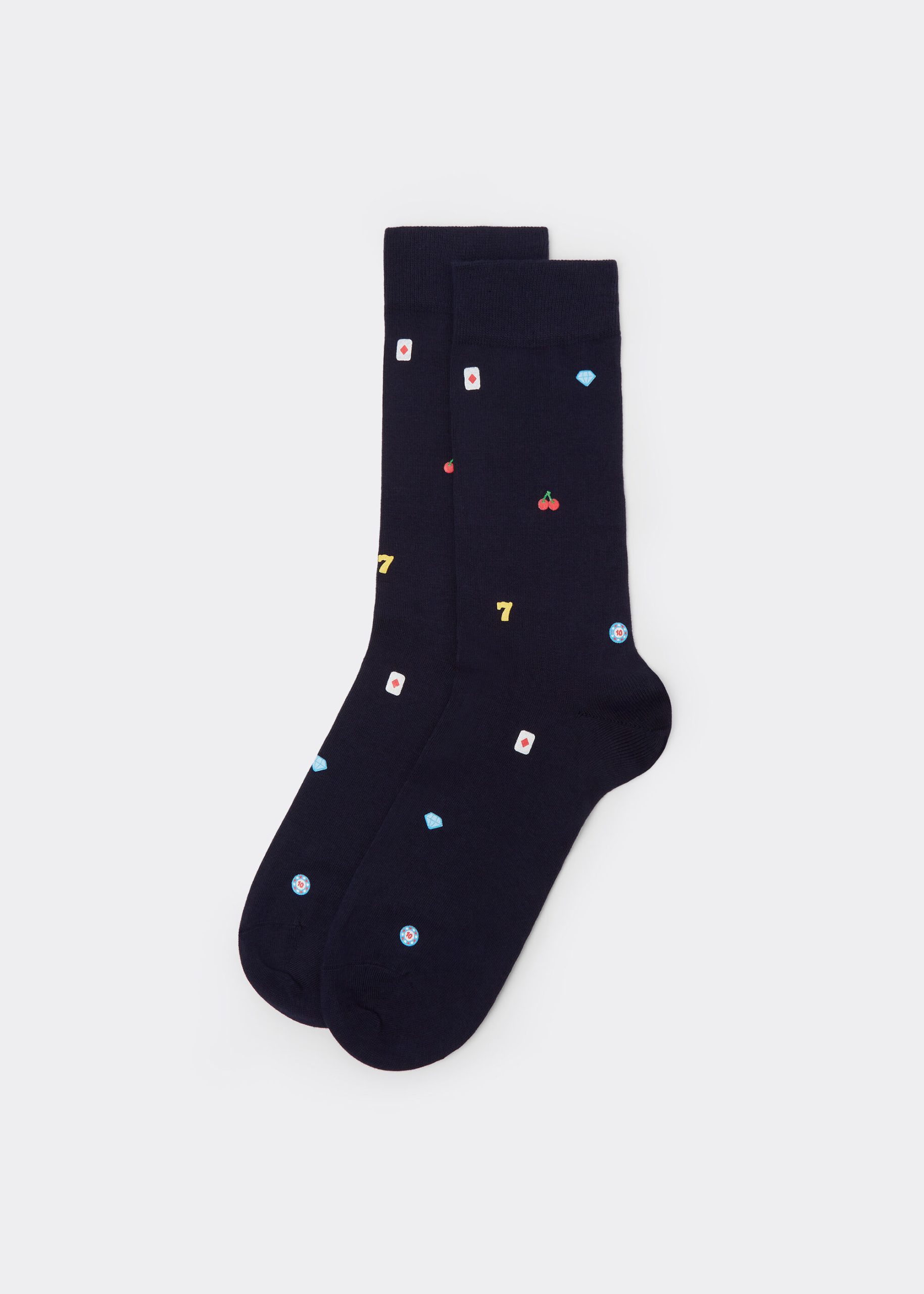 Men’s short socks in cotton, featuring a charming all over screen print. This design offers comfort and fun style, perfect to complete your day-to-day look with a touch of happiness and originality.