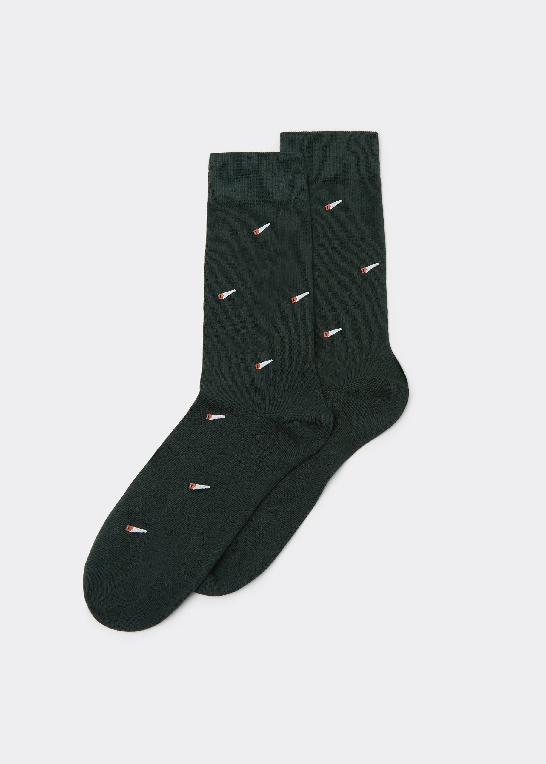 Men’s short socks in cotton, featuring a charming all over screen print. This design offers comfort and fun style, perfect to complete your day-to-day look with a touch of happiness and originality.