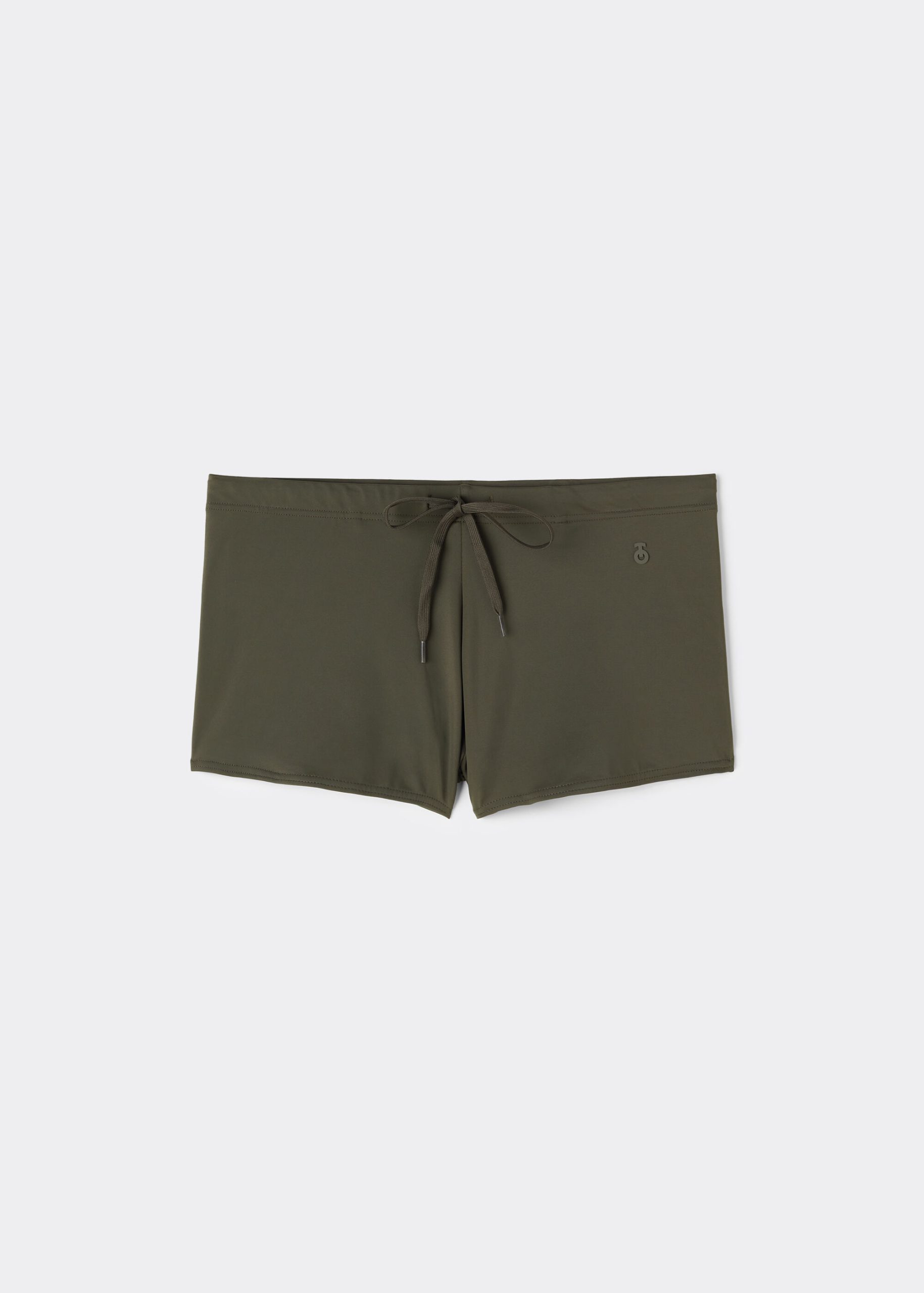 Men’s swimming shorts in microfiber with slightly high sides and regular back coverage. Covered elastic waistband and adjustable external drawstring. Interior front lining.