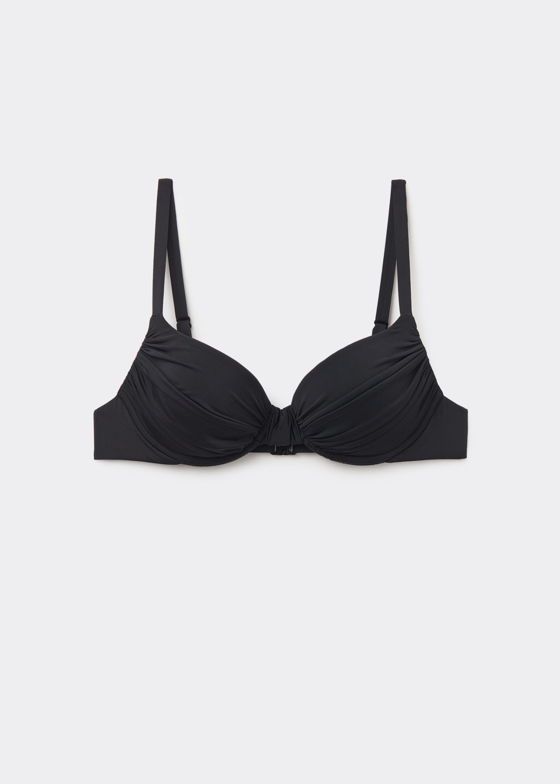 Push-up bikini top with graduated padding and underwire for more volume at the bust. The extremely soft fabric makes it pleasant to wear, offering a light and comfortable feel on the skin. Adjustable straps and hook closure with two adjusters.