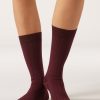 Women’s long cotton socks with elegant foulard pattern. Comfortable and durable, featuring soft elastic for a perfect fit.