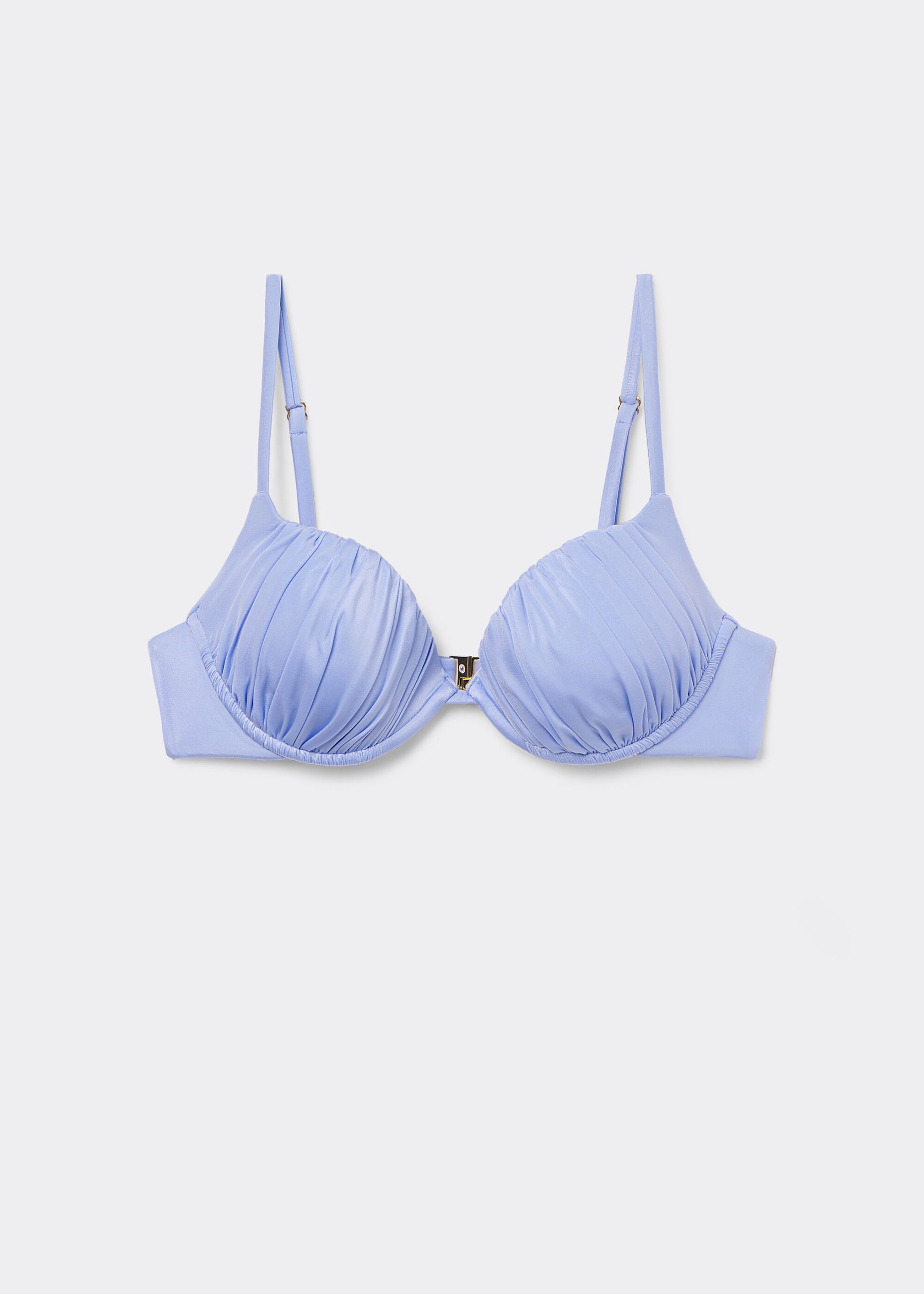 Push-up bikini top with lightly padded cups and underwire to guarantee support and provide volume. The style features a bright fabric with a silky effect. Fixed Shoulder Straps. Rear closure with double adjustment hook.
