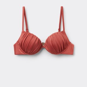 Push-up bikini top with lightly padded cups and underwire to guarantee support and provide volume. The style features a bright fabric with a silky effect. Fixed Shoulder Straps. Rear closure with double adjustment hook.