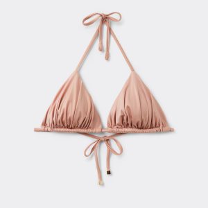 Removable Padding Triangle Swimsuit Top Shiny Satin