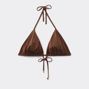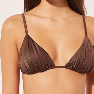 Removable Padding Triangle Swimsuit Top Shiny Satin