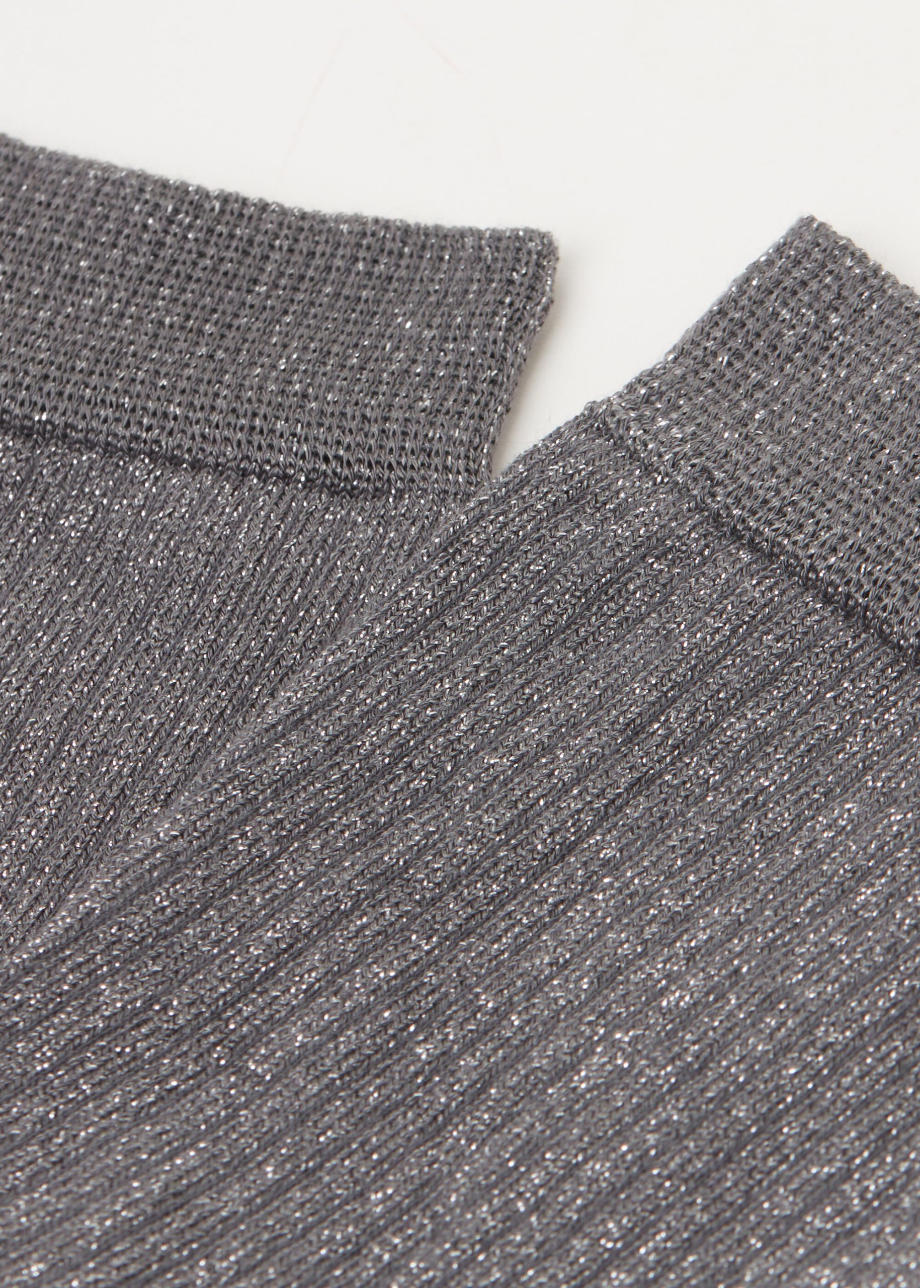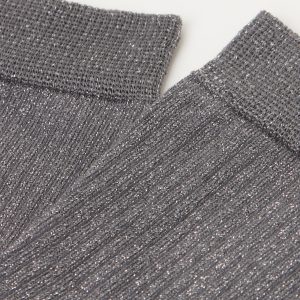 Women’s ribbed short socks with glitter-embellished cuffs, ideal to add a touch of sparkle and style to your wardrobe. Made with soft and comfortable fibers, they guarantee comfort and optimal fit. Perfect to complete each outfit with a touch of glamour, either for special occasions or everyday.