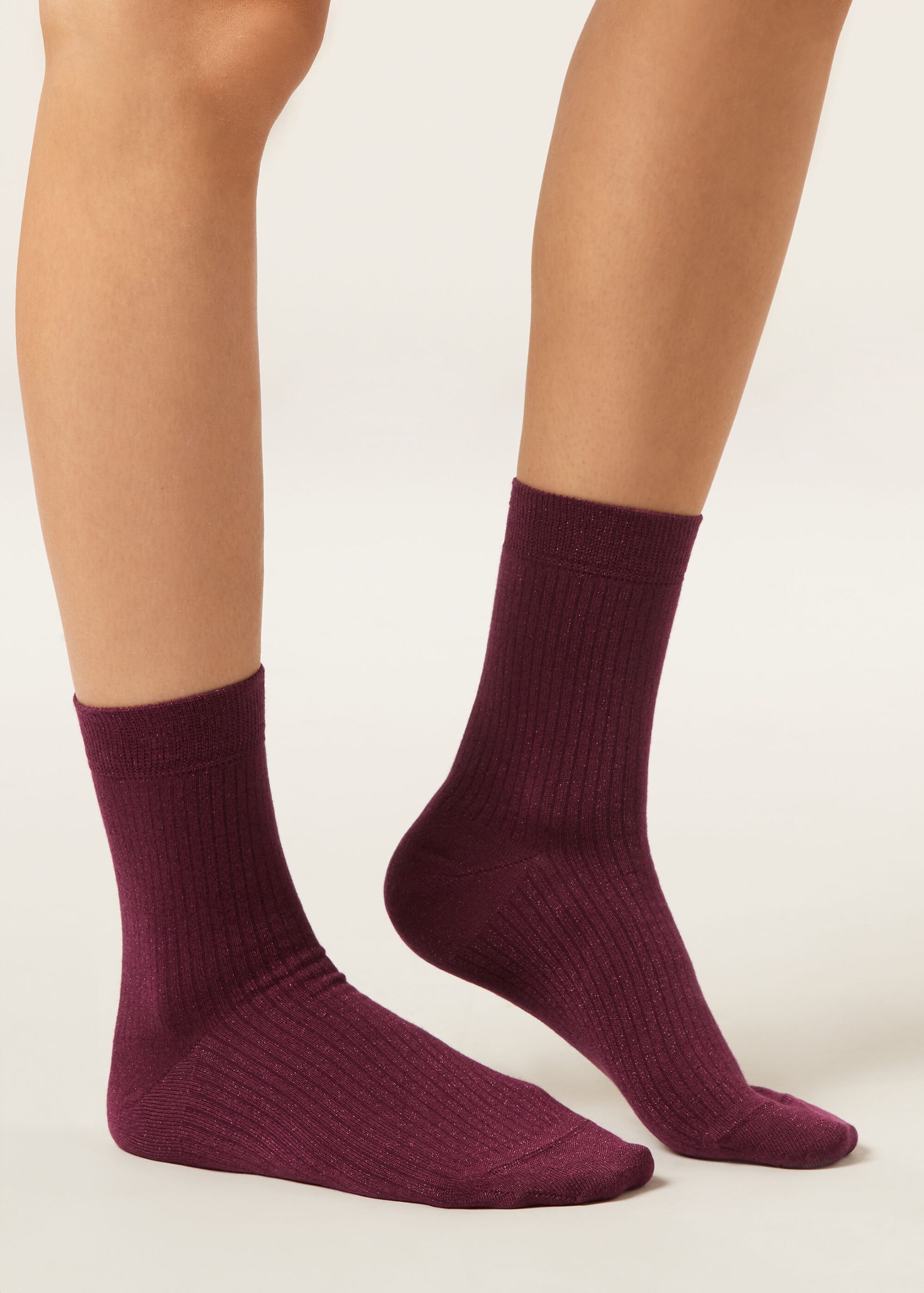 Women’s ribbed short socks with glitter-embellished cuffs, ideal to add a touch of sparkle and style to your wardrobe. Made with soft and comfortable fibers, they guarantee comfort and optimal fit. Perfect to complete each outfit with a touch of glamour, either for special occasions or everyday.