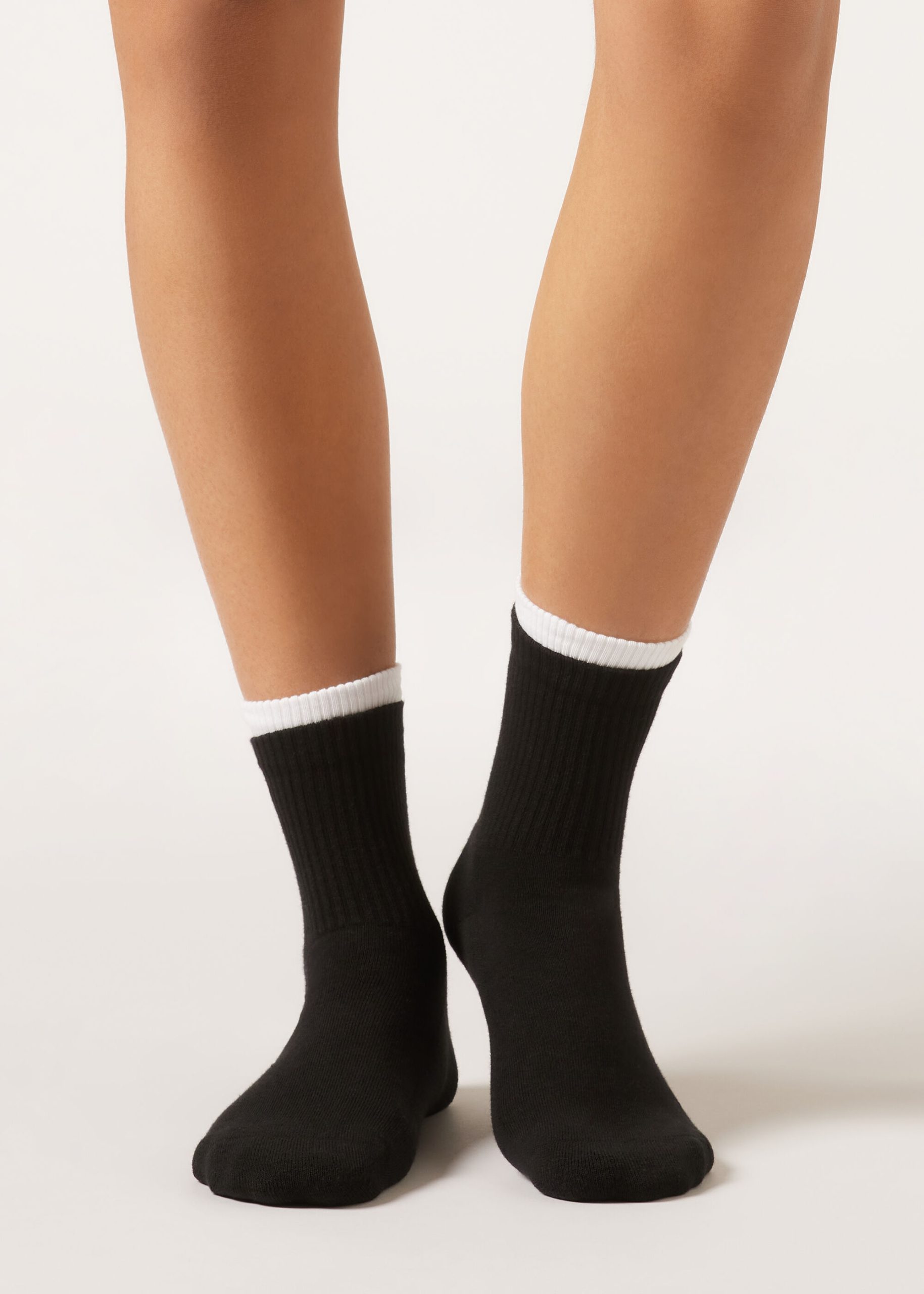 Women’s short socks, in soft, breathable cotton, ideal for your sports activities and leisure time. The double cuff adds a touch of style and ensures a stable and comfortable hold.