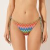 Brazilian bikini bottom with soft sides, featuring a bright fabric with a silky effect with ruffles. Fully lined with invisible seams.