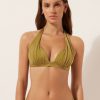 Brazilian bikini bottom with soft sides, featuring a bright fabric with a silky effect with ruffles. Fully lined with invisible seams.