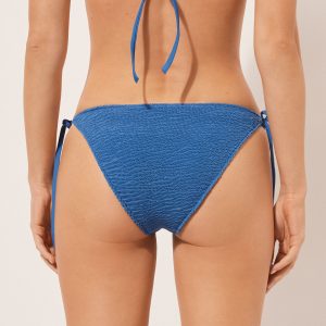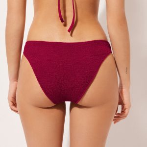 Bikini bottoms with adjustable fit thanks to the side ties. The slightly rounded waist at the front allows for both a regular and more high-cut fit, depending on one’s physique. The style features a crinkle fabric with a three-dimensional effect. Fully lined.