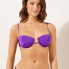 String bikini bottoms with side ties to adjust the fit. The slightly rounded waist at the front allows for both a regular and more high-cut fit, depending on one’s physique. It features a minimal fit that exalts the silhouette with a touch of sensuality and refinement. The bright silk-effect fabric embellished by elegant golden details radiates a sophisticated sensation of discrete luxury.