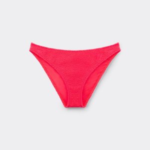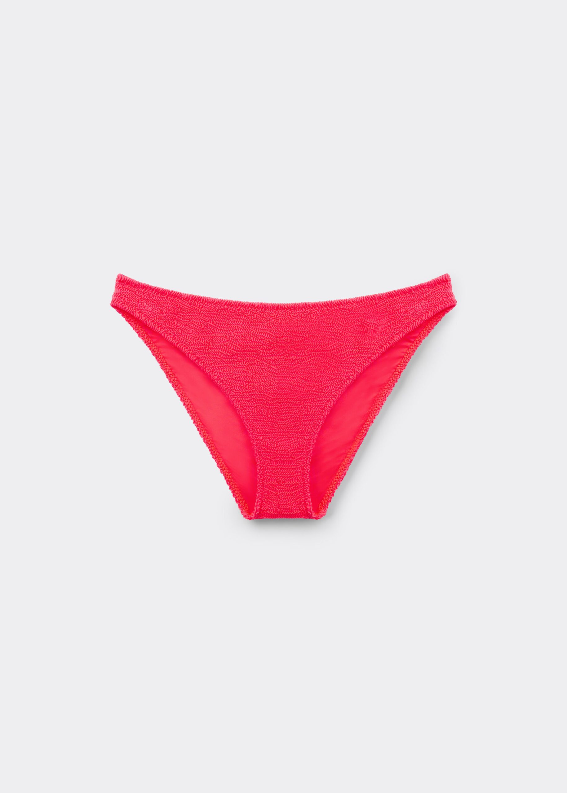 Fully lined bikini bottoms with invisible seams in a crinkle fabric with a three-dimensional effect. The slightly rounded waist allows it to be worn either as normal or with the legs higher to show off the physique.