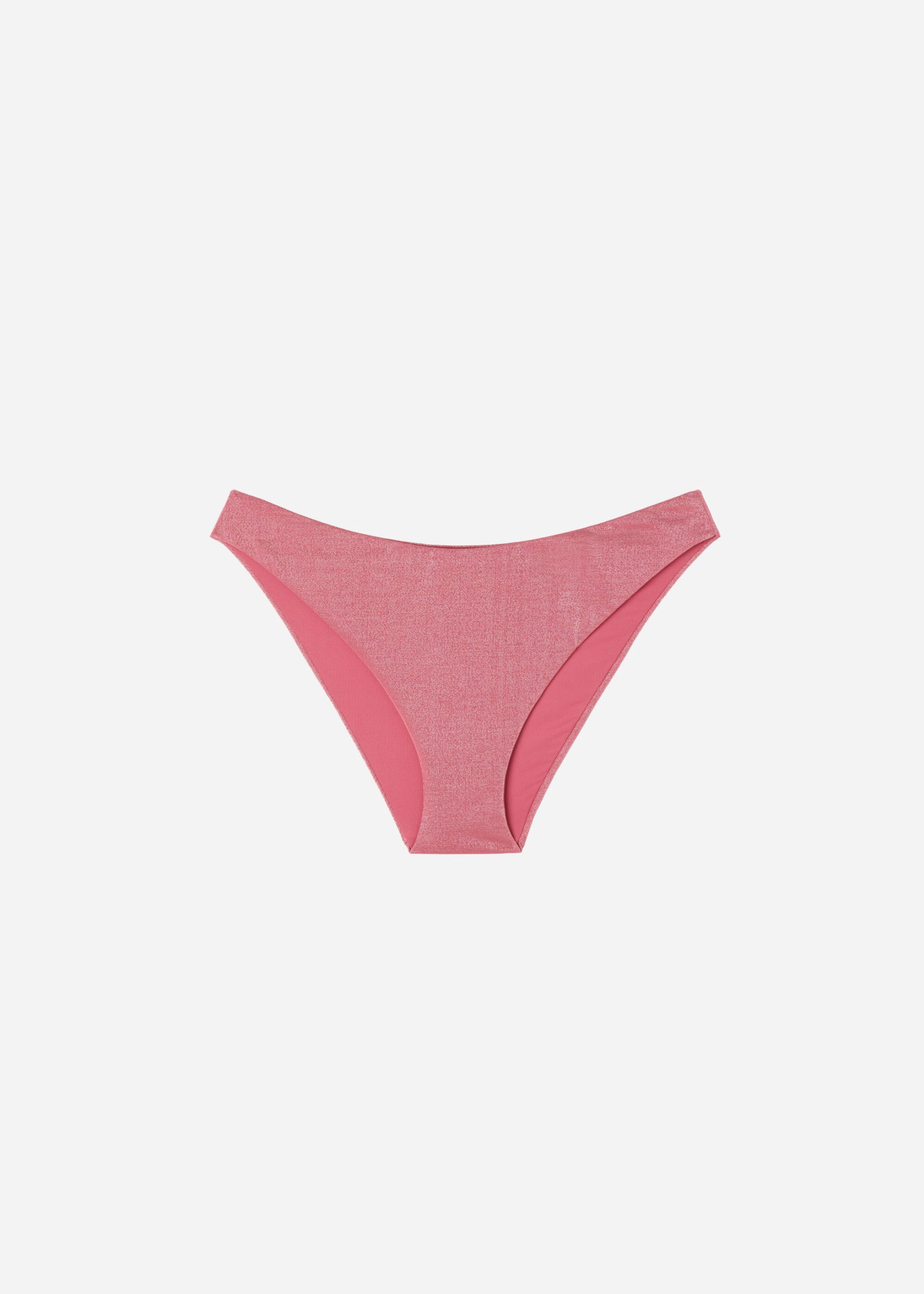 Fully lined bikini bottoms. The slightly rounded waist at the front allows for both a classic or more high-cut fit, depending on one’s physique. Soft fabric with shiny lamé thread.