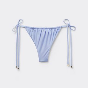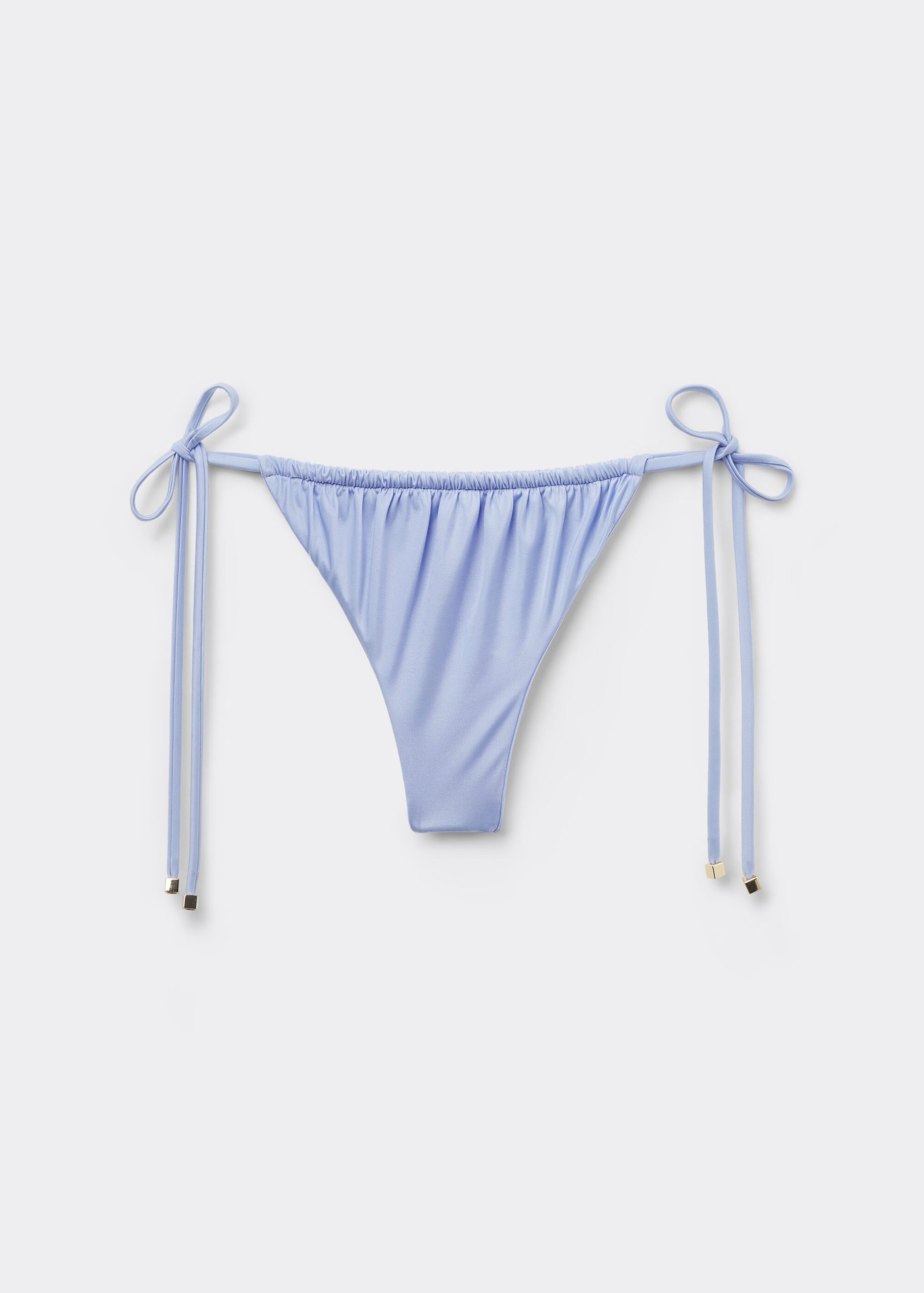Thong bikini bottoms with adjustable thin sides. The slightly rounded front allows for wearing it either as normal or with the legs higher on the sides to show off the physique. Fully lined with invisible seams.