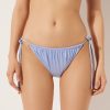 Slide triangle bikini top with removable padding and no underwire for a natural effect. The style features a particularly soft three-dimensional diagonal-motif fabric. The shoulder straps have eyelets on the ends so they can be hooked onto the back band or tied behind the neck. Back string tie closure embellished with silver tips.