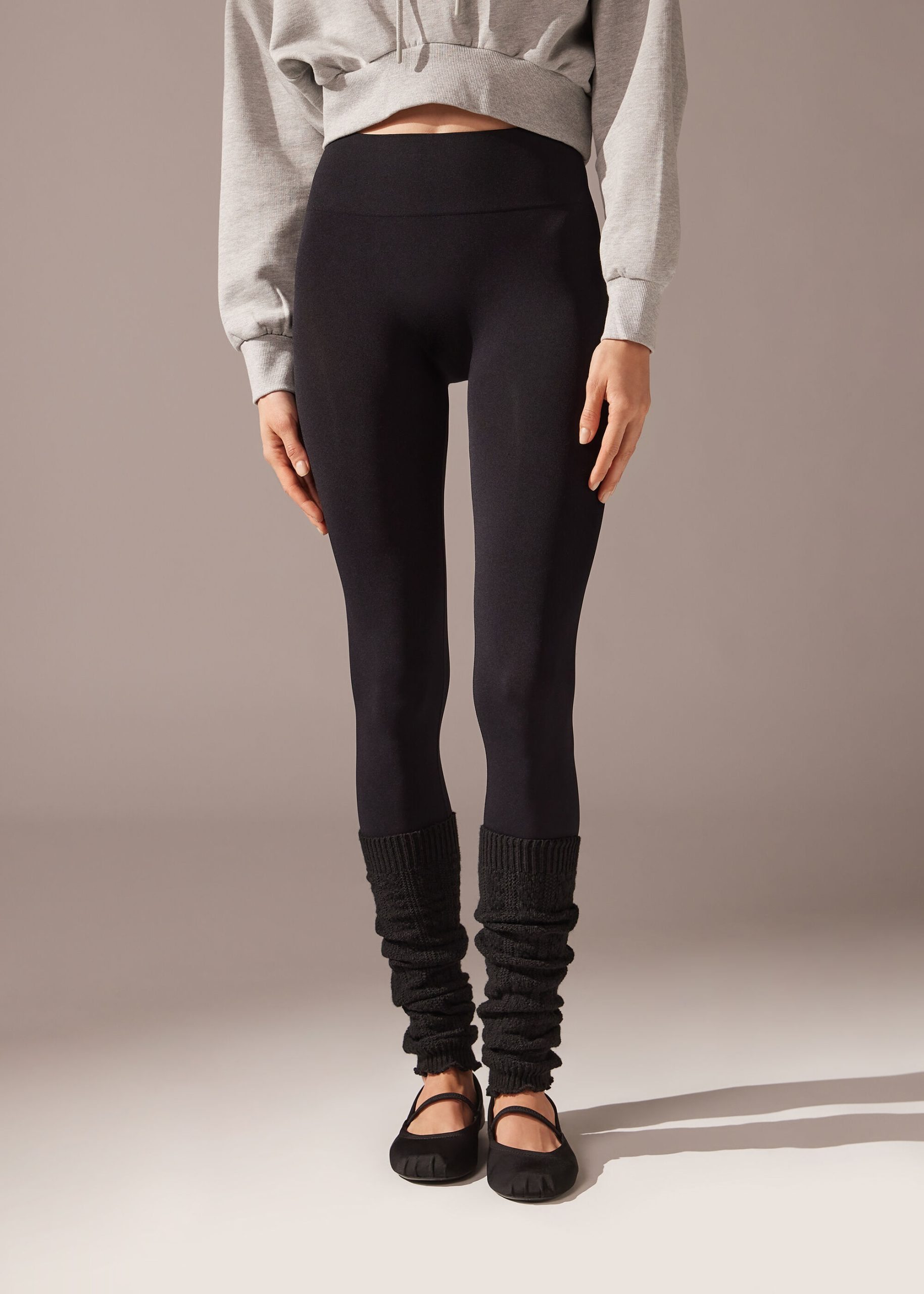 Super opaque leggings in microfiber with a seamless top, comfort waistband and soft cuffs on the bottom.